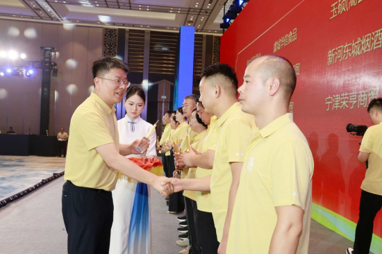 稻花香集團(tuán)董事長、稻花香酒業(yè)公司董事長、總經(jīng)理蔡開云,集團(tuán)總經(jīng)理曾洋,集團(tuán)黨委副書記方麗華,集團(tuán)副總經(jīng)理兼稻花香酒業(yè)公司副總經(jīng)理陳小磊,稻花香酒業(yè)公司副總經(jīng)理兼銷售公司總經(jīng)理羅賢強(qiáng)等分別為他們頒獎。稻花香酒業(yè)公司副總經(jīng)理兼省外南區(qū)經(jīng)理宣讀《湖北稻花香酒業(yè)銷售有限公司關(guān)于表彰二〇二五年度優(yōu)秀經(jīng)銷商的通報(bào)》。